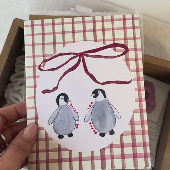 Celebrate your Valentine with this whimsical, penguin design. Featuring two penguins in love, this card was originally painted by hand and carefully digitized for a beautiful, high-quality print.