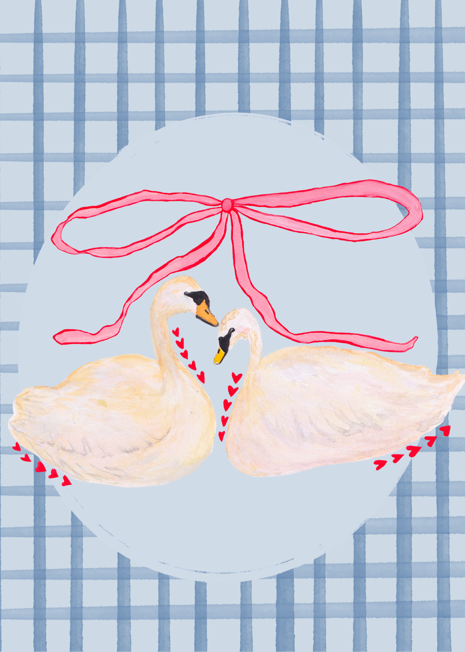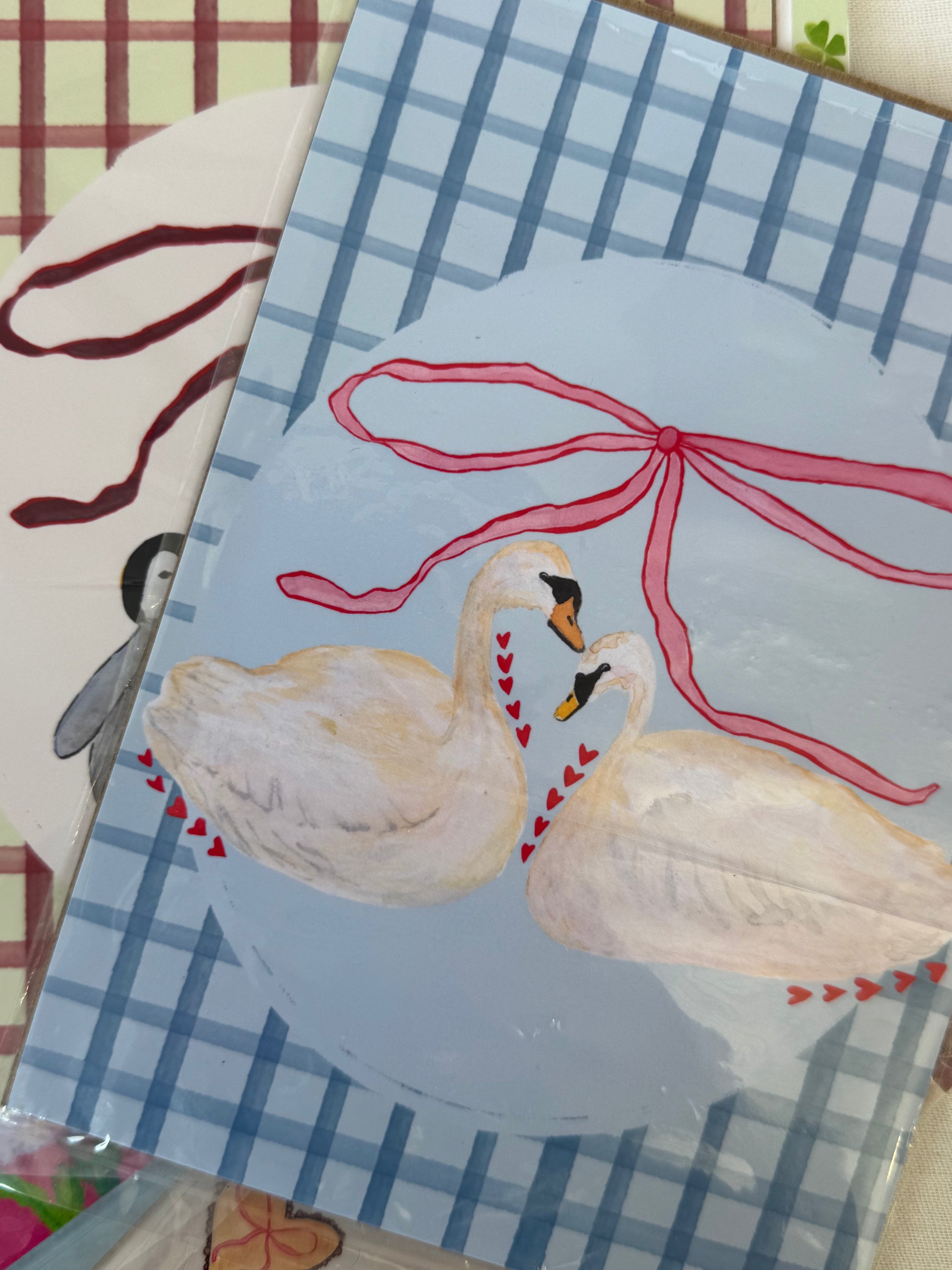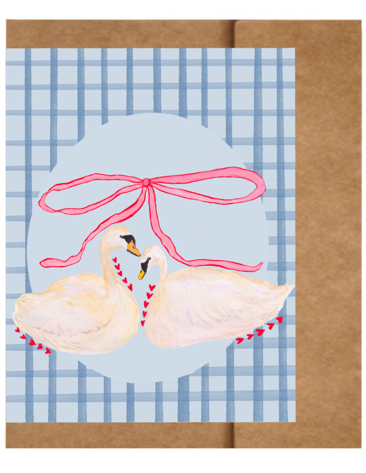 Celebrate your Valentine with this whimsical, swan design. Featuring two swans in love, this card was originally painted by hand and carefully digitized for a beautiful, high-quality print.