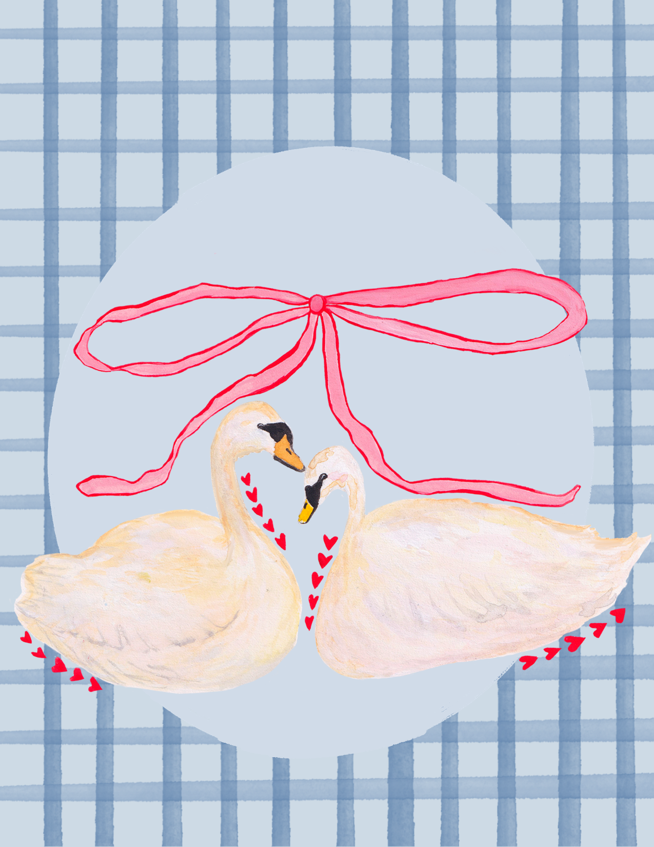 Swan Lovers is a playful print bursting with love and hand-painted charm. Perfect for adding calm to any space, this print is professionally printed on luster paper for a soft, vibrant finish.