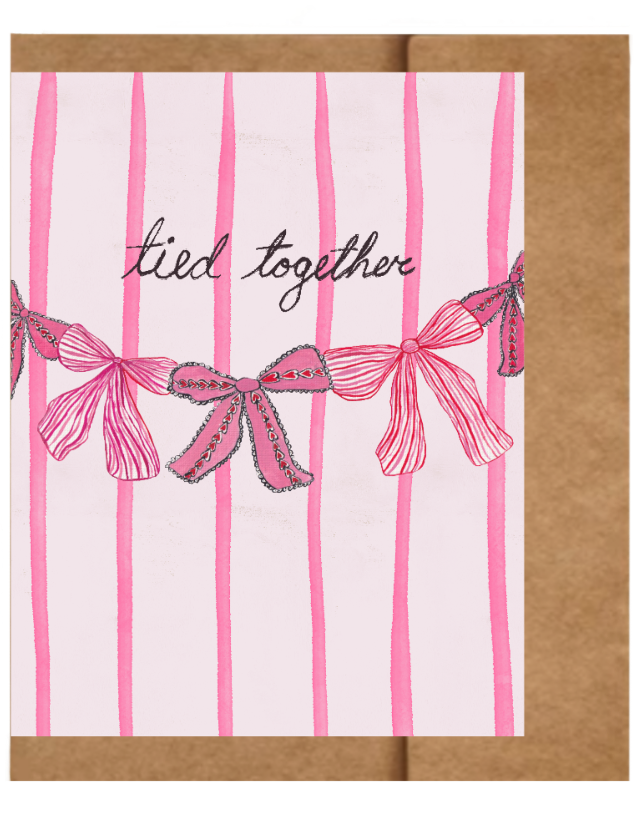 Celebrate connection and love with this sweet, hand-painted bow design. Featuring soft pink stripes and charming ribbon details, this card was originally painted by hand and carefully digitized for a beautiful, high-quality print.